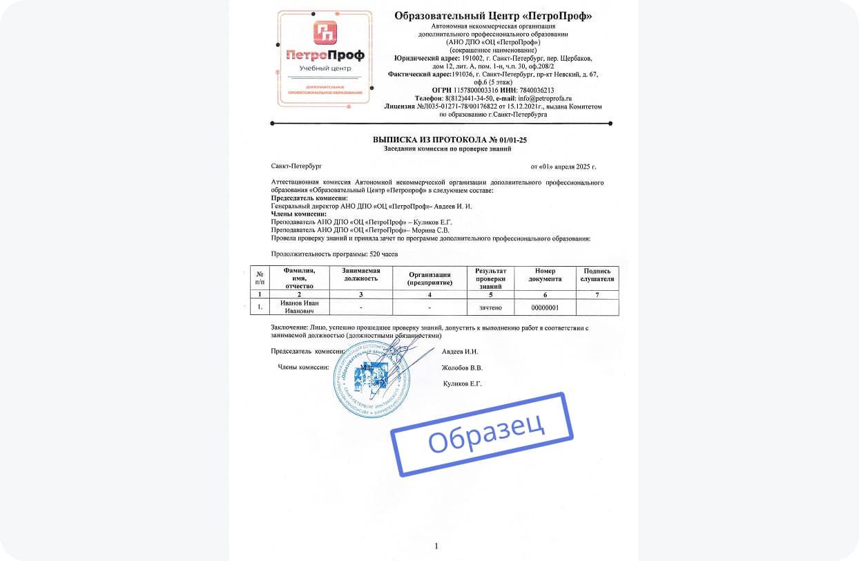 Учебный центр «ПетроПроф» также предоставляет программы переподготовки и переквалификации для специалистов, уже работающих в смежных областях. Пройдя переподготовку, вы сможете расширить свои знания и получить новую профессию, что откроет перед вами дополнительные карьерные возможности. Программы переквалификации особенно полезны для людей, желающих изменить свою профессиональную деятельность или освоить новые направления в производстве.